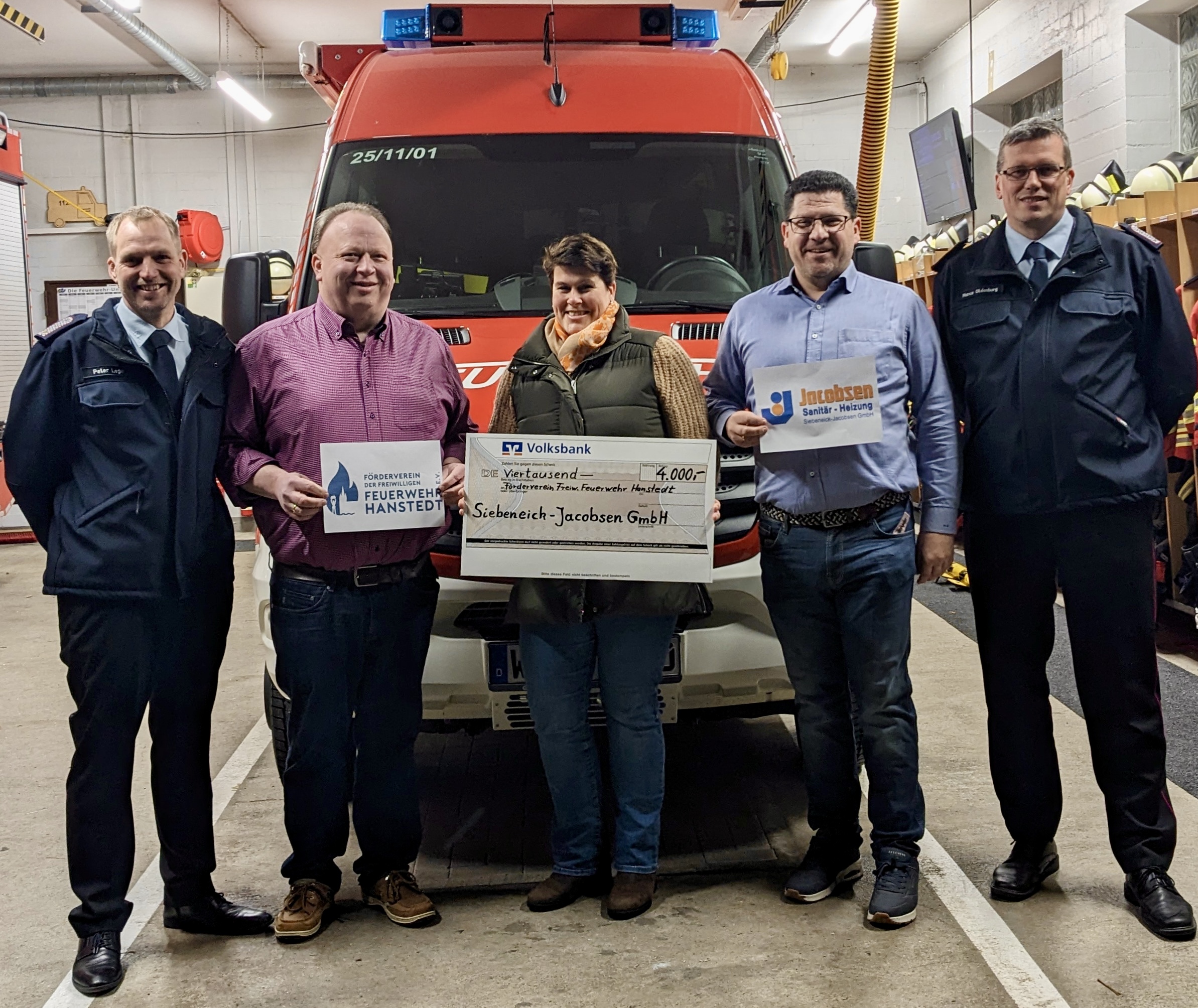 Große Freude bei der Jugendfeuerwehr Hanstedt: Jutta Siebeneick von der Firma Siebeneick-Jacobsen GmbH überreichte eine Spende in Höhe von 4.000 Euro an den Förderverein der Feuerwehr Hanstedt, mit dem Ziel, die Jugendfeuerwehr bei der Anschaffung von Ausrüstung und Materialien für den Dienstbetrieb zu unterstützen.