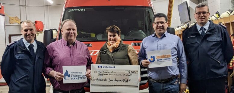 Große Freude bei der Jugendfeuerwehr Hanstedt: Jutta Siebeneick von der Firma Siebeneick-Jacobsen GmbH überreichte eine Spende in Höhe von 4.000 Euro an den Förderverein der Feuerwehr Hanstedt, mit dem Ziel, die Jugendfeuerwehr bei der Anschaffung von Ausrüstung und Materialien für den Dienstbetrieb zu unterstützen.